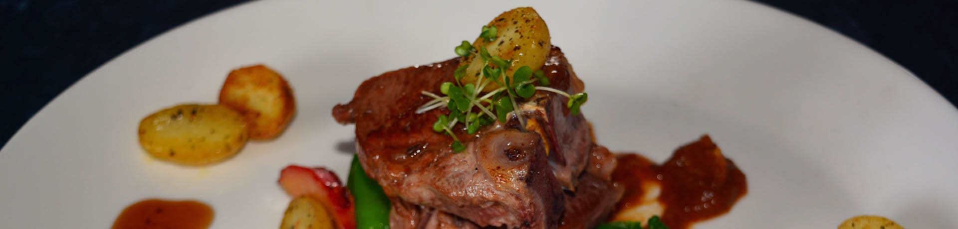 - Loin of lamb with roasted vegetables and triple-cooked new potatoes